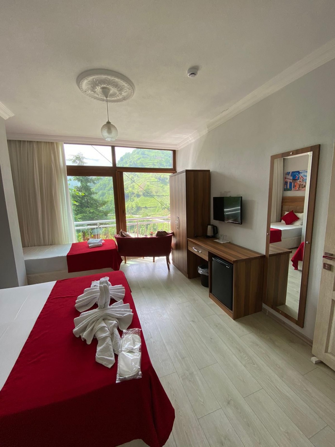 Vadidekal Suit Hotel is a boutique and peaceful accommodation located in the heart of nature, on the banks of the Fırtına River in Ardeşen district of Rize. Offering its guests the sounds of nature and the tranquility of greenery, this hotel is away from the hustle and bustle of the city but provides easy access to the region's tourist attractions. With its small and intimate structure, Vadidekal Suit offers a warm atmosphere and features different room types; rooms with lake, mountain, or river views provide a stay immersed in nature. You can enjoy regional and home-cooked meals with a view at the hotel's restaurant, and relax in the café. Each room offers basic comforts such as air conditioning, free Wi-Fi, satellite TV, a private bathroom, and some rooms have balconies. In addition, services such as daily cleaning, 24-hour reception, and free parking are prioritized for guest comfort. In terms of activities, you can spice up your day with adrenaline-filled options such as nature walks, rafting, zipline, and canoeing in the surrounding area. Vadidekal Suit, with its cleanliness, friendly service, and natural surroundings, is an ideal accommodation option for those seeking both a peaceful holiday and an adventurous getaway.