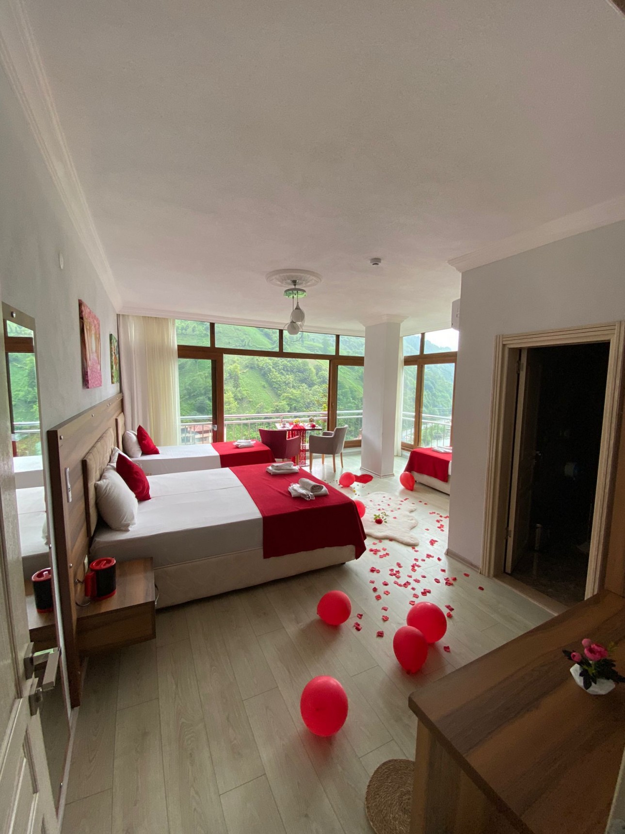 Vadidekal Suit Hotel is a boutique and peaceful accommodation located in the heart of nature, on the banks of the Fırtına River in Ardeşen district of Rize. Offering its guests the sounds of nature and the tranquility of greenery, this hotel is away from the hustle and bustle of the city but provides easy access to the region's tourist attractions. With its small and intimate structure, Vadidekal Suit offers a warm atmosphere and features different room types; rooms with lake, mountain, or river views provide a stay immersed in nature. You can enjoy regional and home-cooked meals with a view at the hotel's restaurant, and relax in the café. Each room offers basic comforts such as air conditioning, free Wi-Fi, satellite TV, a private bathroom, and some rooms have balconies. In addition, services such as daily cleaning, 24-hour reception, and free parking are prioritized for guest comfort. In terms of activities, you can spice up your day with adrenaline-filled options such as nature walks, rafting, zipline, and canoeing in the surrounding area. Vadidekal Suit, with its cleanliness, friendly service, and natural surroundings, is an ideal accommodation option for those seeking both a peaceful holiday and an adventurous getaway.