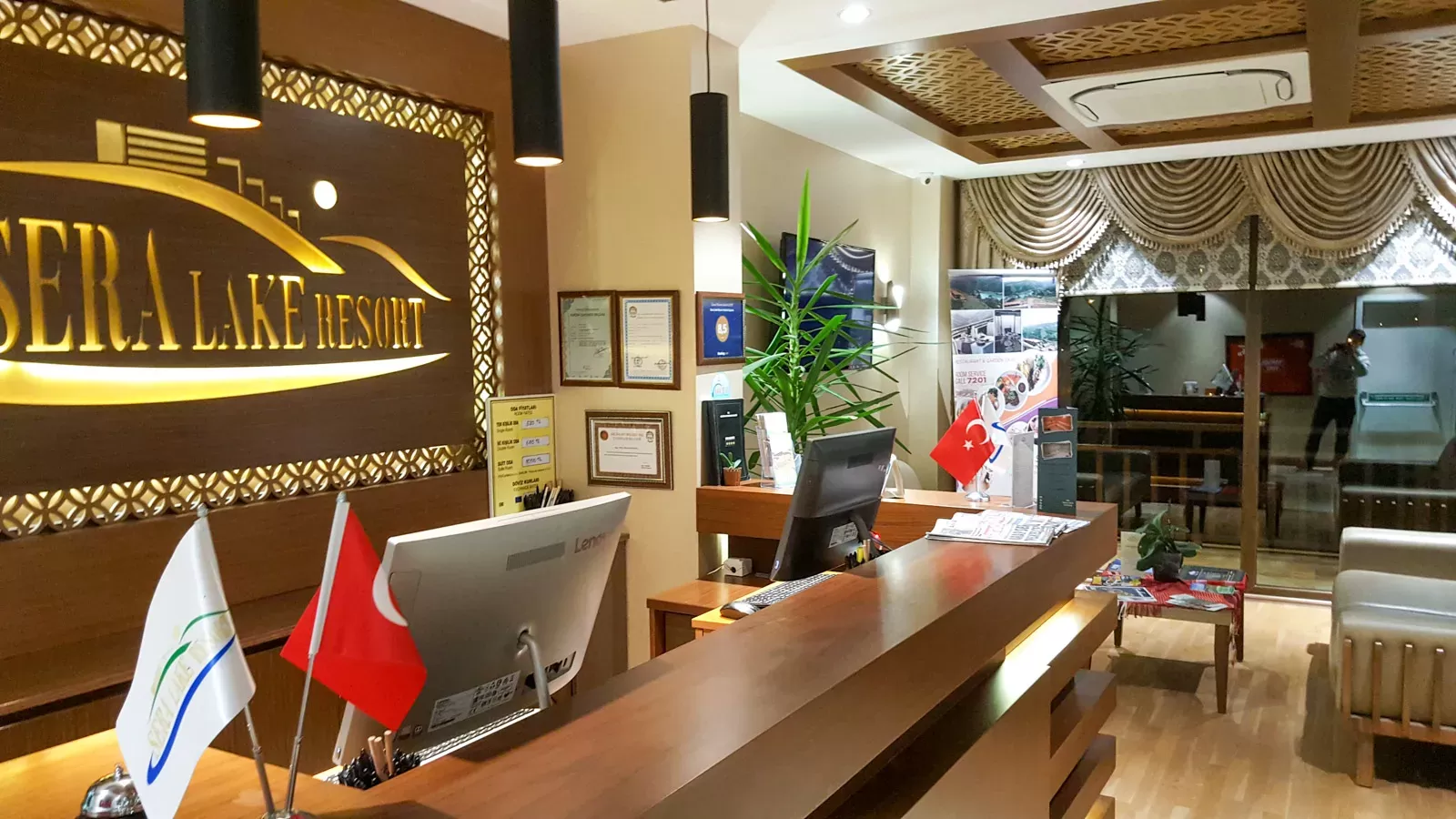 Sera Lake Resort Hotel is a modern hotel located next to Sera Lake in Akçaabat, Trabzon, offering a comfortable holiday surrounded by nature. The hotel has approximately 68 rooms, offering a variety of options with lake, valley, sea, and city views. The hotel offers a wide range of relaxation and wellness services, including a restaurant, buffet breakfast, spa, Turkish bath, sauna, massage rooms, indoor pool, and fitness center. The top-floor restaurant is very popular for its dining experience overlooking Sera Lake and the Black Sea. Private seating areas are also available on the garden and terrace. Its location, within easy reach of the city center and the airport, makes it an ideal choice for both touristic excursions and peaceful holidays. It also provides a convenient setting for activities such as nature walks, photography, and relaxing lakeside activities.